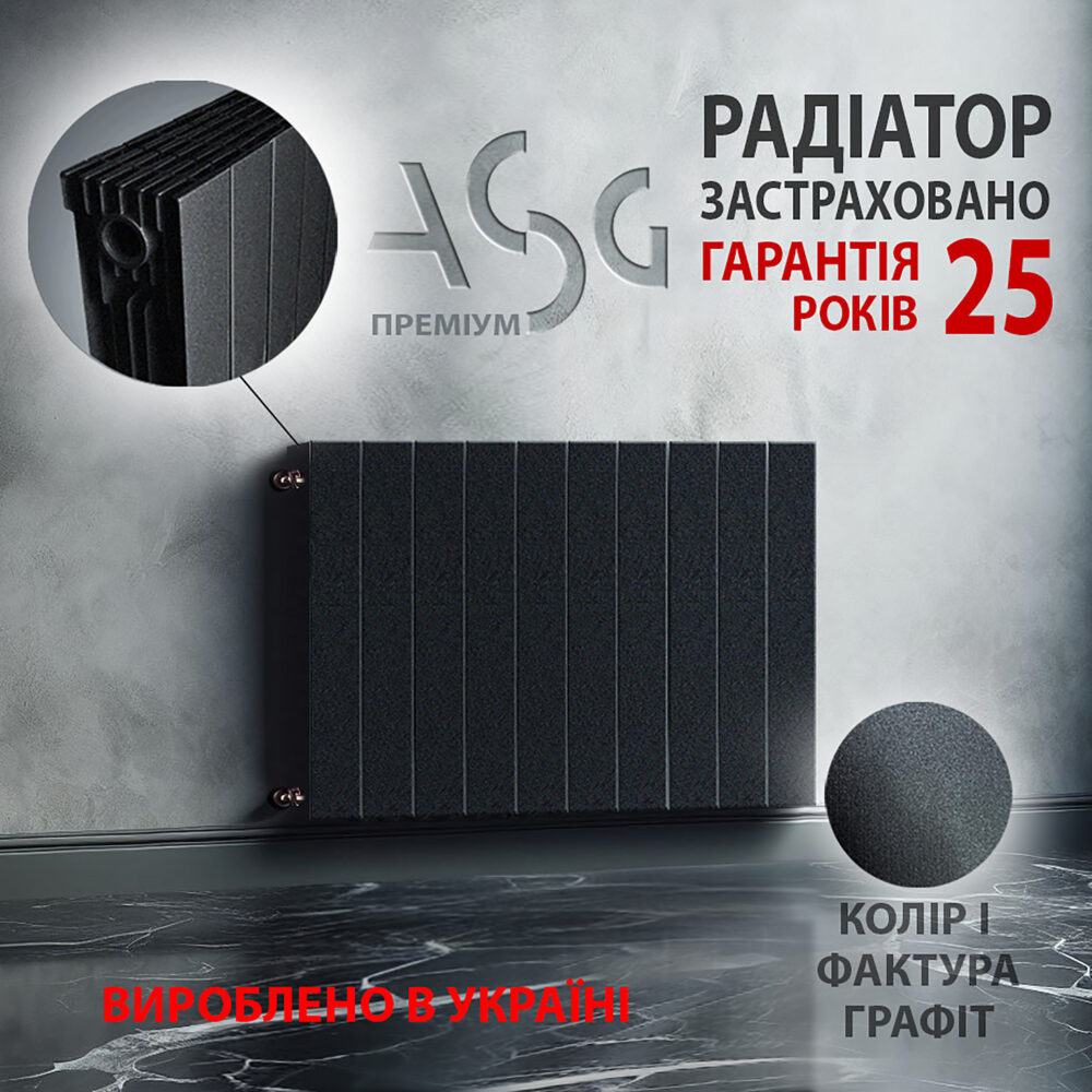 Біметалевий дизайн-радіатори ASG 300/100 Black - широко застосовуються з будь-якими системами опалення. Радіатор виготовляється на сучасному обладнанні зі спеціально підготовленого алюмінієвого сплаву який відповідає стандартам якості ENAB46100. Це дозволяє забезпечити комфортну експлуатацію не менше ніж на 50 років.