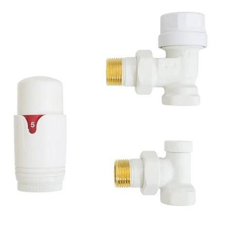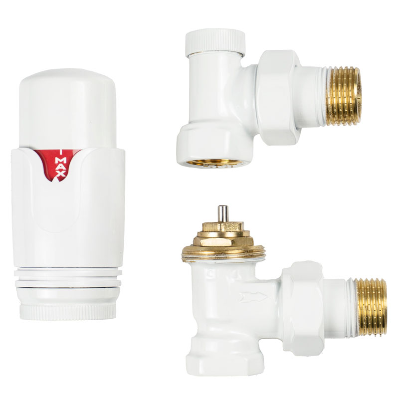 Радіаторний комплект з термоголовкою Warm Well (Білий, кутовий) - для підключення радіатора та точного налаштування температури в приміщенні. Забезпечте комфортний клімат у своєму домі з нашими кранами підключення для радіатора.